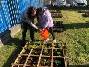 Nel plesso della Scuola primaria, tenuto conto dello spazio ridotto, si sono create delle zone mediante l’uso di orti rialzati e fioriere in legno e,